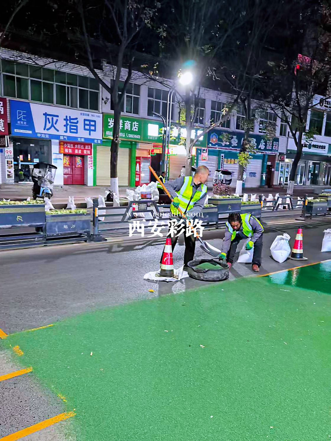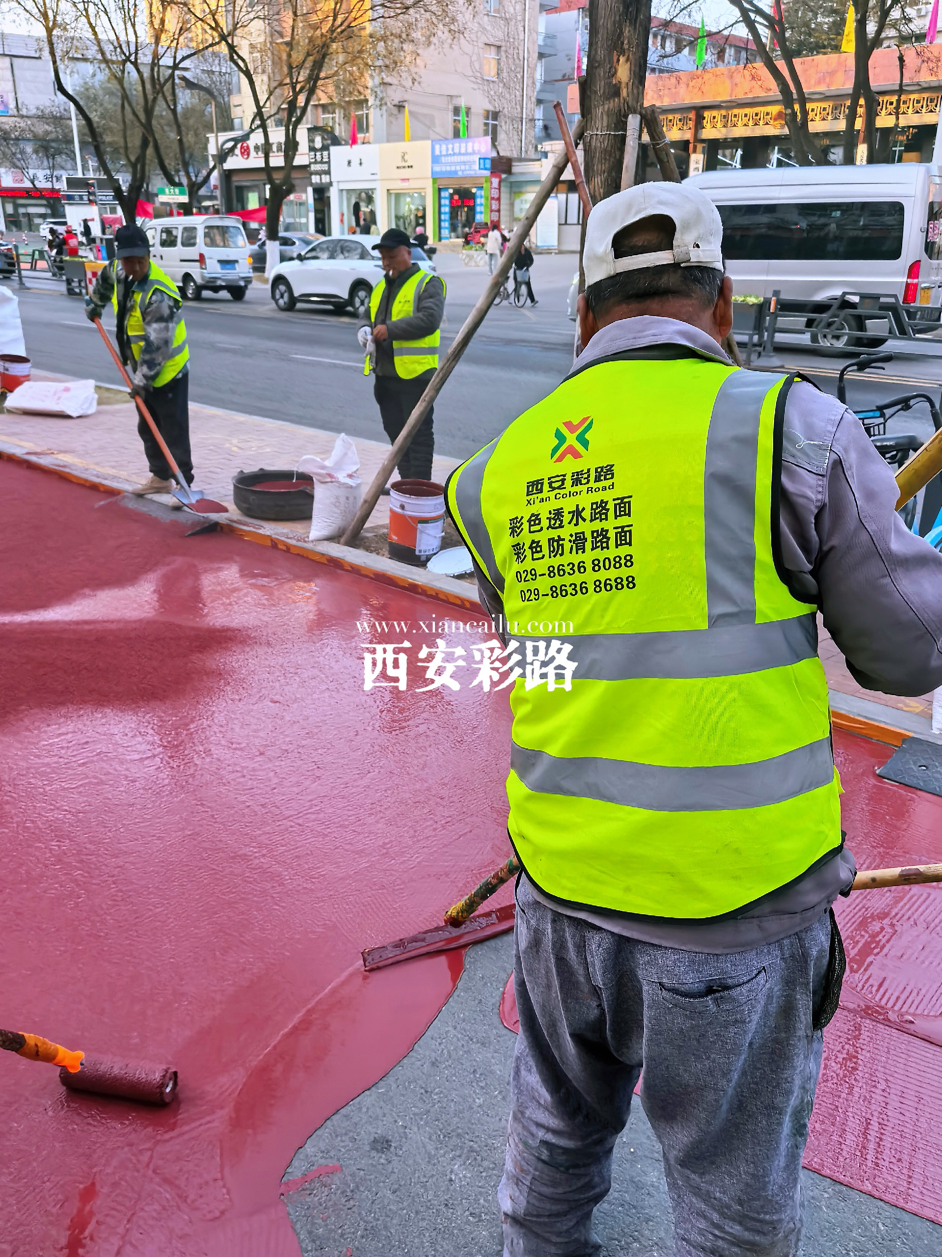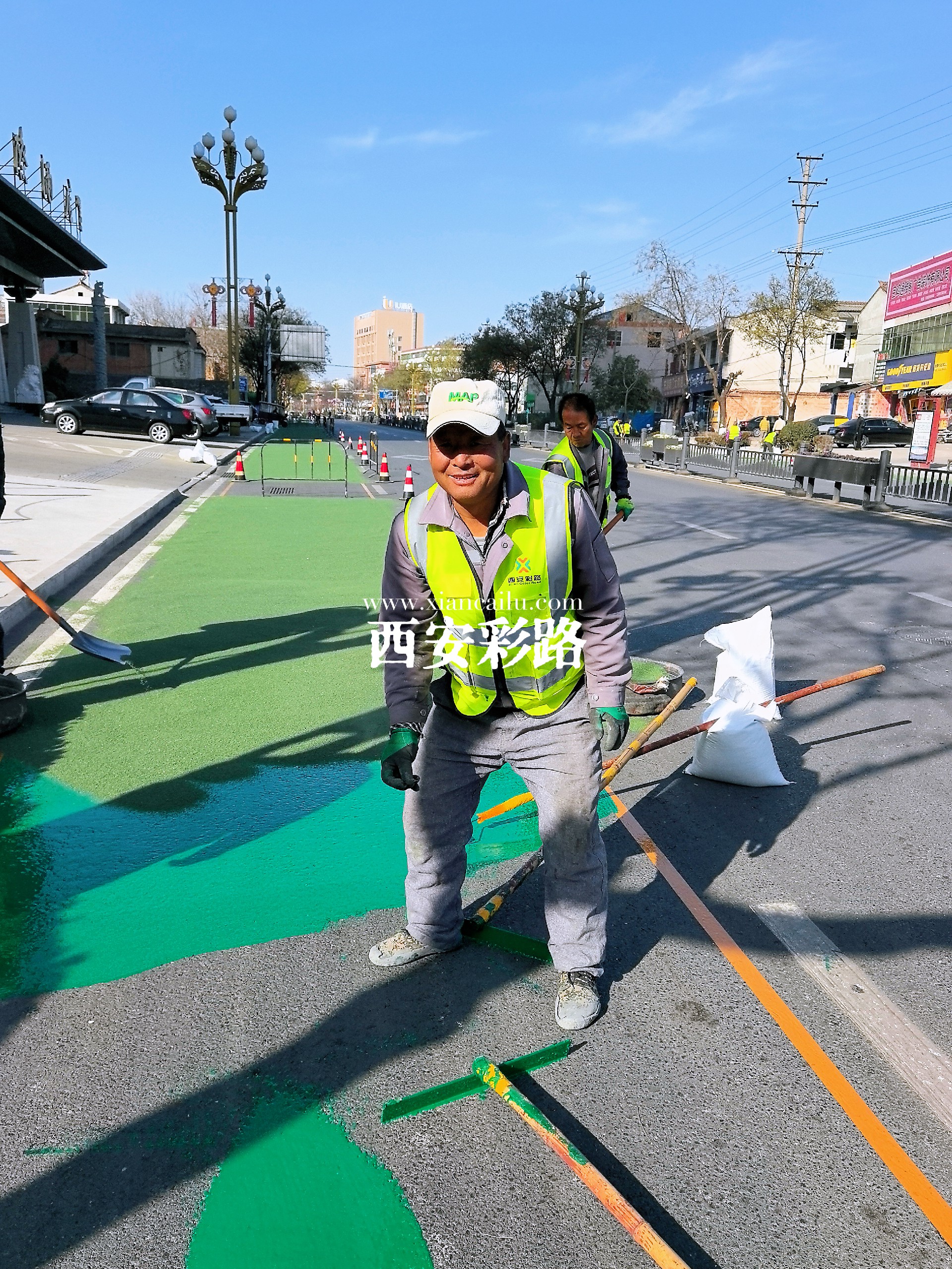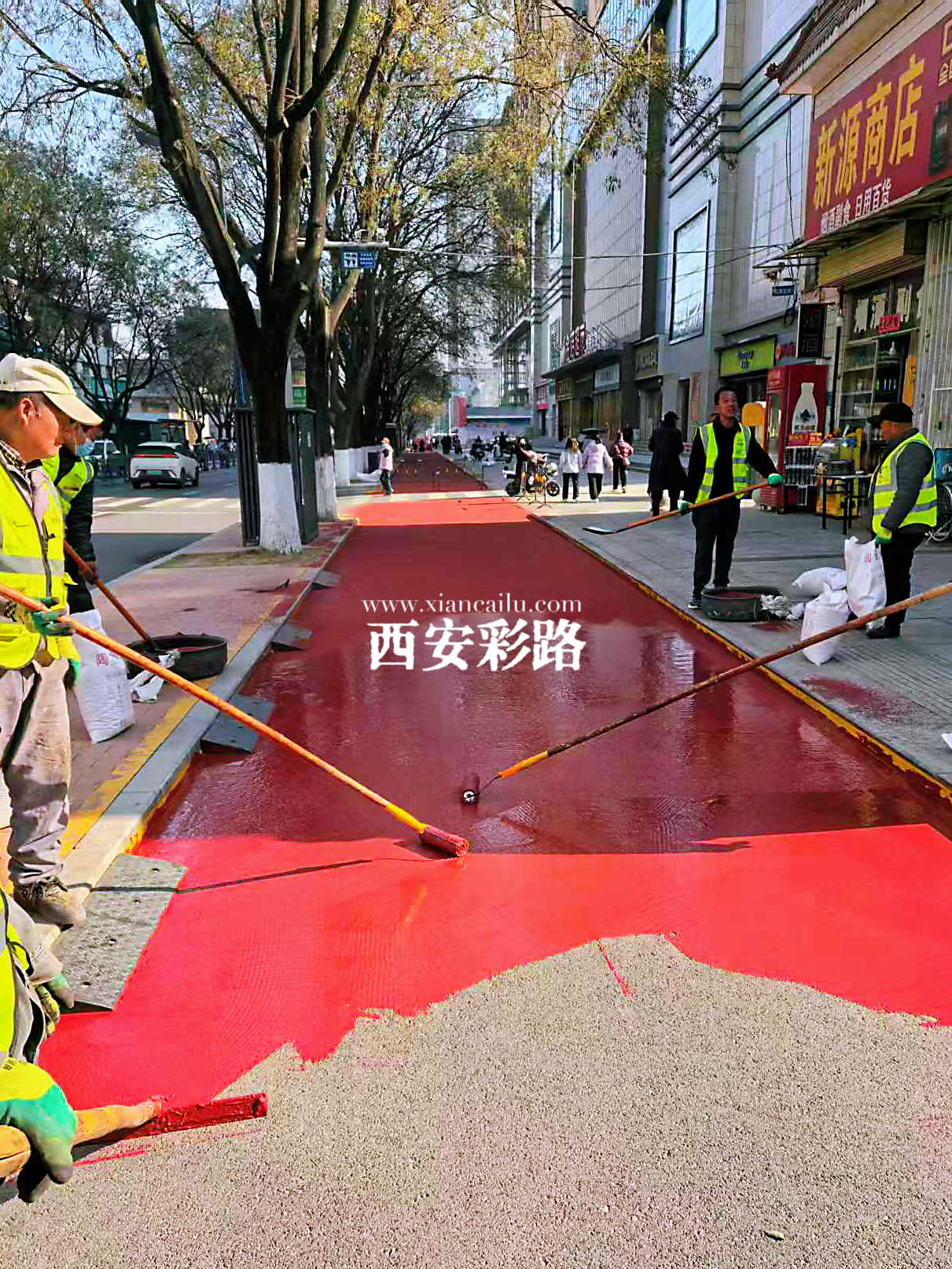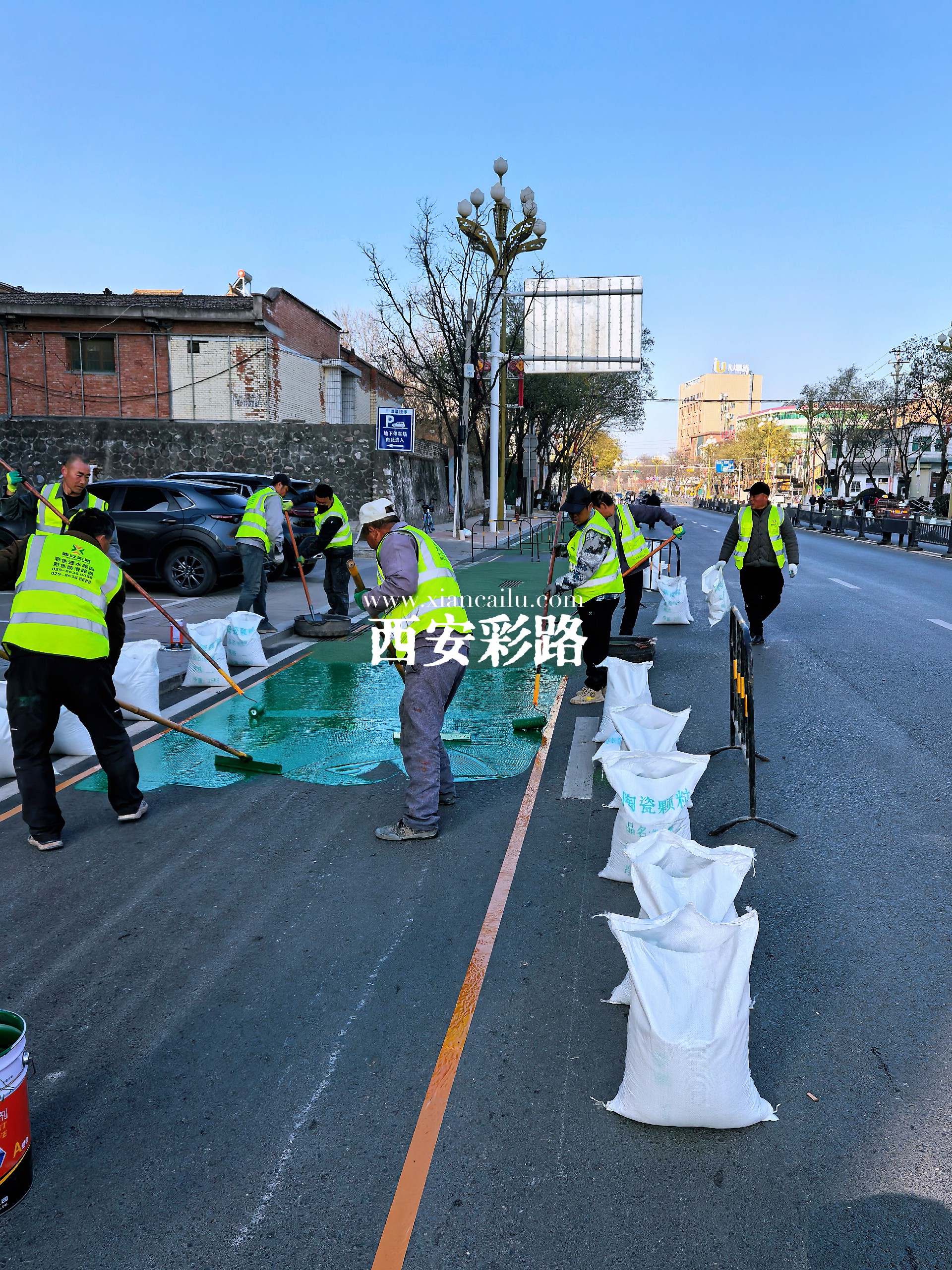 【凤翔区市政道路改造提升】彩色陶瓷颗粒防滑路面-彩色防滑路面-西安彩路道路工程有限公司