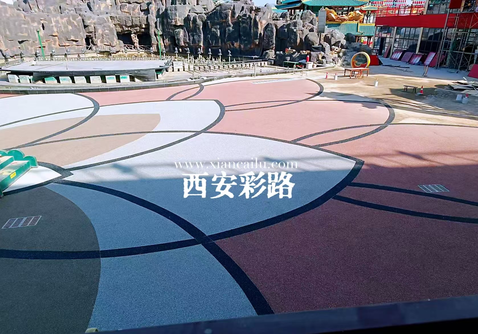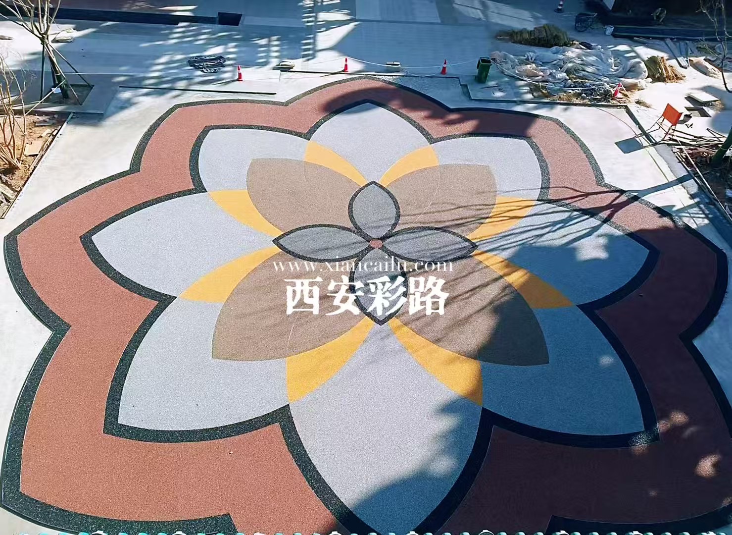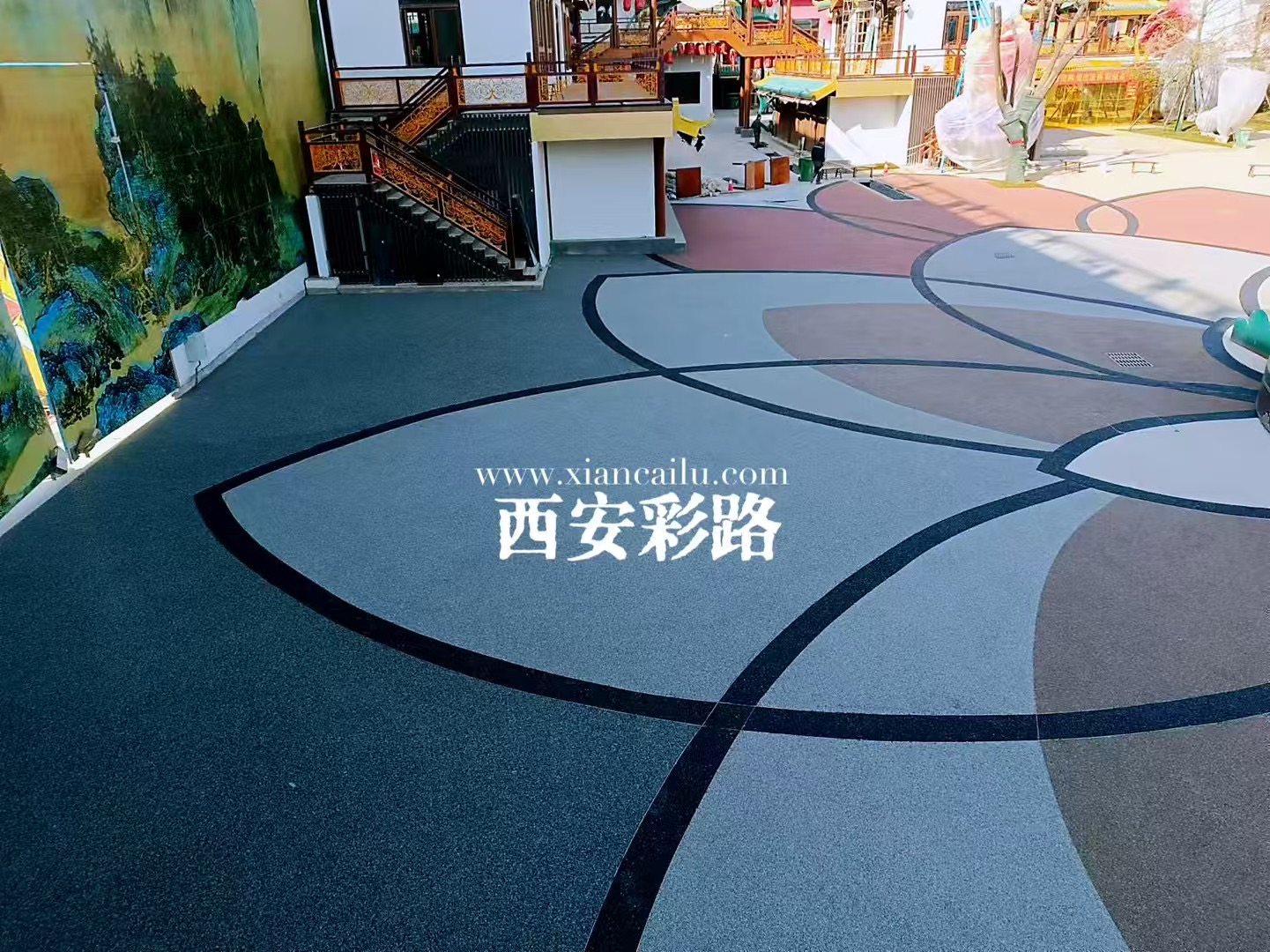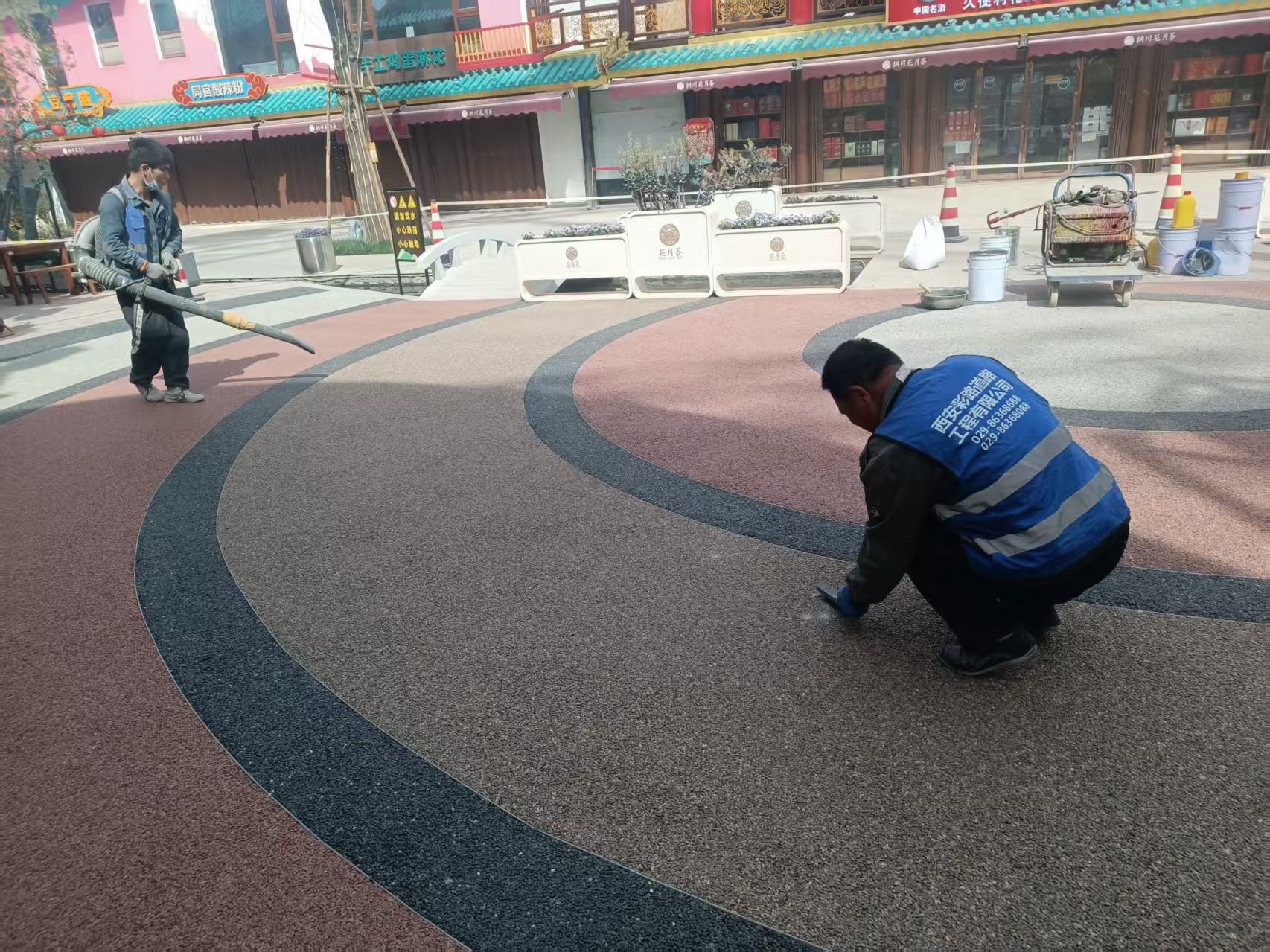 铜川花月荟-胶粘石及水性聚合物彩色路面项目-公司新闻-西安彩路道路工程有限公司